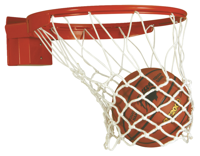 Bison Baseline 180 Breakaway Basketball Rim featuring adjustable pressure and enclosed breakaway mechanism fits any 42 or 48 inch board. 5/8 in Steel rim has a ring assembly that floats on 13 hardened ball bearings for consistent tension. Rim also allows easy net installation without wires or cords with its hideaway system. Rim included with anti-whip net and hardware has hardened moving parts.