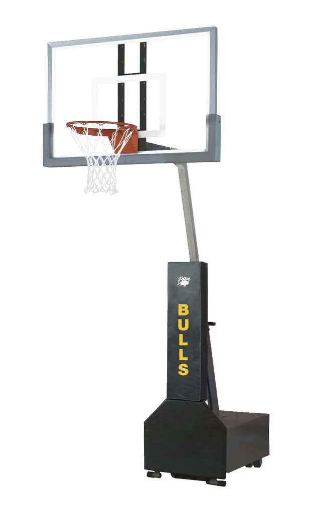 Bison Club Court Portable Basketball System, 54 X 36 Inch Backboard, Tempered Glass Backboard, Black Padding