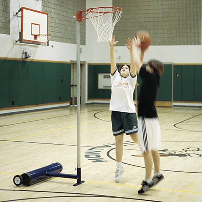 The Jaypro Net Basketball Adapter fits any 2 inch game standard (works perfectly with the Easy Play Game Standard, 015260). Comes wit rim, net and mounting hardware.